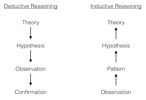 In deductive reasoning, we start with a broad theory about the rules governing a system, distill this theory into more specific hypotheses, gather specific observations and test them against our hypotheses in order to confirm whether the original theory was correct.